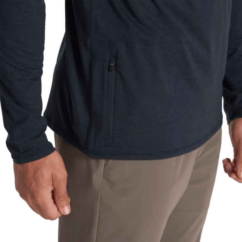Vuori has taken your favorite fabric and elevated it. The lightweight, buttery-soft performance stretch knit will be a daily favorite in a half zip with a hood and kangaroo pocket.Â